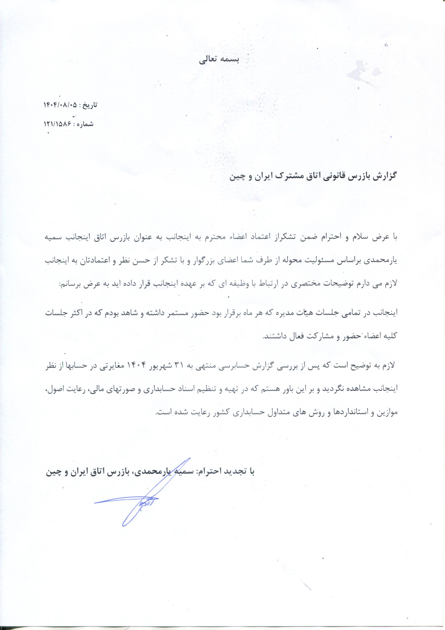 شورای بازرگانی ایران و چین که در بدو امر با عضويت 65 نفر از تجار کار خود را آغاز کرده بود به علت فعاليت های گسترده خود مورد توجه هيات رئيسه اتاق بازرگانی و صنايع و معادن ايران قرار گرفت و با تغيير نام شورا به اتاق مشترک بازرگانی ايران و چين اعلام موافقت نمود.